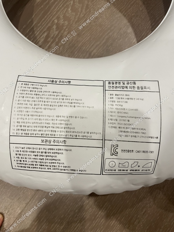 한국에서 구매한 튜브입니다. 바람 빠짐 없이 짱짱하고 상태 좋아요.