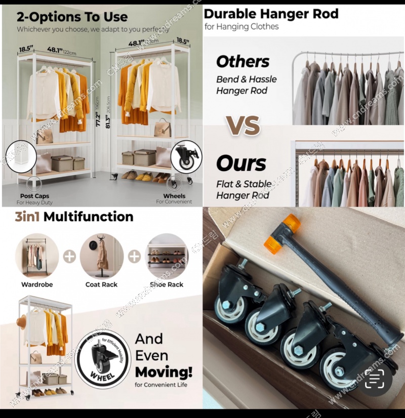 -구성 : 옷장(분해 가능), 바퀴, 고무망치, 옷걸이들