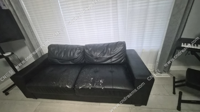 Brick에서 구입한 검정 인조가죽 loveseat 입니다