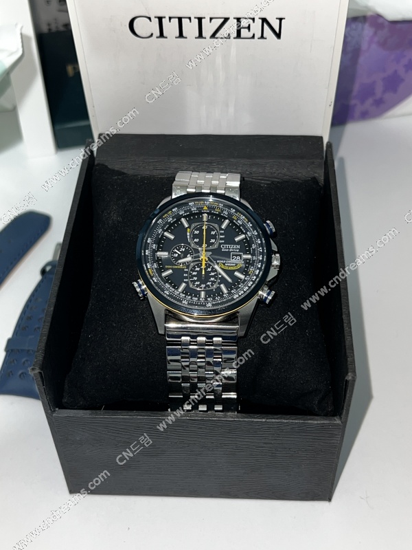 시티즌 대표 기술인 에코드라이브, 라디오 컨트롤 기능 다 들어가 있는 크로노그래프 시계입니다. 싼 브슬 사서 줄질했고, 오리지널 스트랩도 드립니다. 원하시면 오리지널로 바꿔서 드리겠습니다.