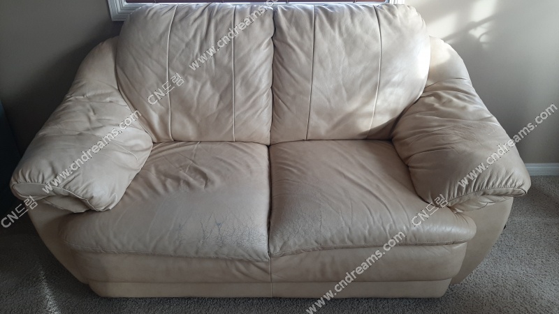 가죽도 부드럽고 쿠션도 괜찮은데, 앉는 자리 앞쪽이 튼 상태입니다.