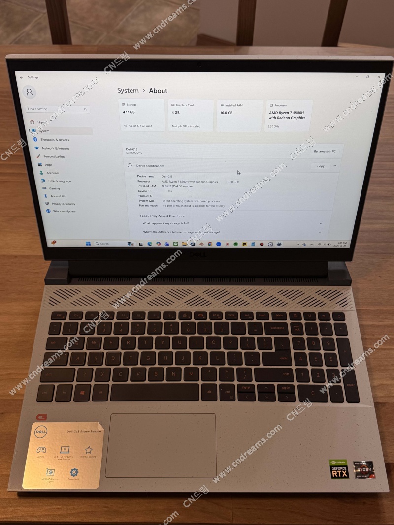 - CPU: AMD Ryzen 7 5800H with Radeon Graphics 3.20GHz - RAM: 16GB - GPU: NVIDIA GeForce RTX 3050 Ti Laptop GPU - SDD : 512GB