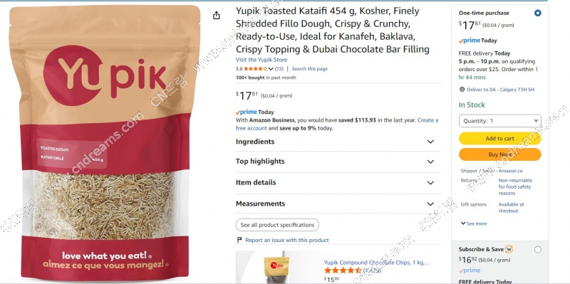 두쫀쿠 속재료 /구운 카타이프 Yupik Toasted Kataifi 454 g 10봉 판매해요
