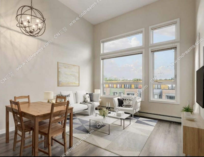 제일 위층이라 거실 천장이 높아서 탁 트인 느낌이 있고, 거실 창가 / 발코니에서 다운타운 뷰가 있습니다, 스탬피드 불꽃놀이도 집에서 구경하실수 있어요.