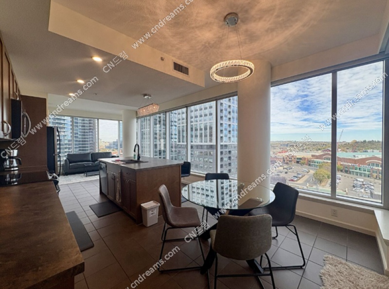 다운타운 Nuera, 10층 코너유닛으로 채광이 좋고 시야가 트인 뷰가 특징입니다. 유틸리티 전체 포함 이며, 인유닛 런드리가 있습니다. 거실은 공용 공간으로 함께 사용하게 됩니다.