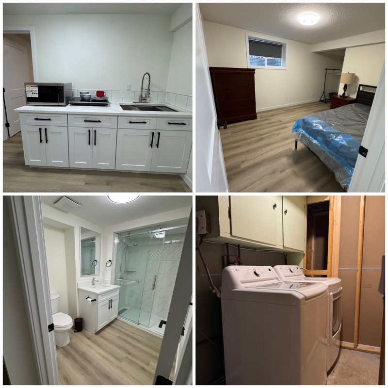 2. 사진에서 보시것과 같이 1 베드룸 + 1 거실겸주방 + 1 베스룸 이렇게 구성된 하프 베이스먼트 원베드룸 스윗입니다. 룸메이트나 룸렌트 아닙니다 개별로된 공간입니다. 혼자 원배드룸 스윗 다 쓰시기 때문에 프라이버시 보장되는 공간입니다. 창이 크게 나있어서 지하같이 느껴지진 않습니다. 집으로 들어가는 입구가 사이드쪽으로 따로나있어서 집주인과 마주치실일 없습니다. 사진에서 보시는데로 새로 레노베이션해서 깨끗 합니다. 거의 새집이라고 보시면 됩니다.