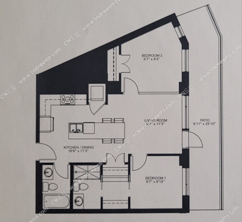 평면도(2 베드룸 / 2 베스룸)를 첨부하였습니다.