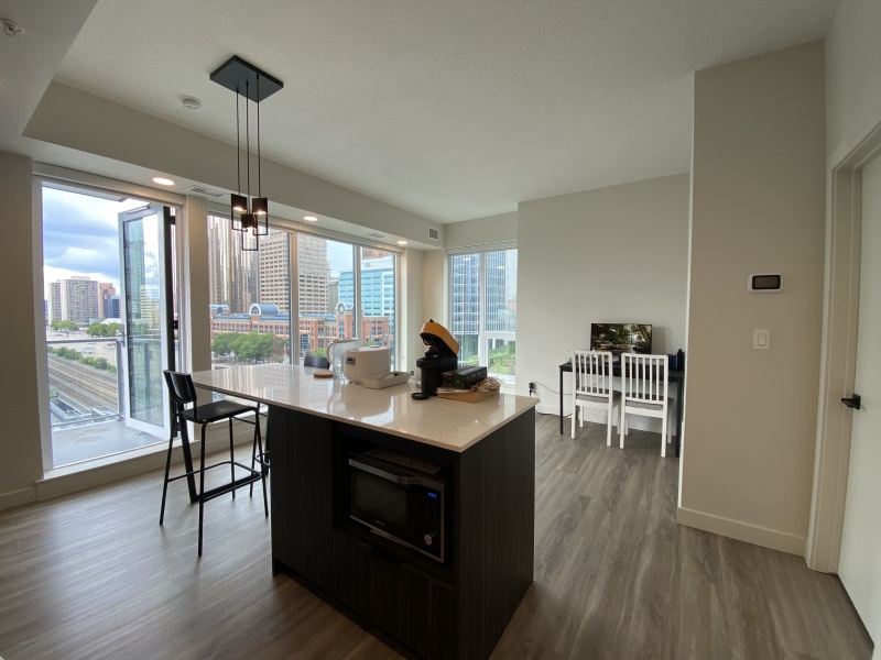 신축 콘도로 매우 깔끔하며, 다운타운 초역세권 C-Train 무료구간(교통비 및 시간 절약)에 위치해 있어 생활과 교통이 매우 편리합니다.