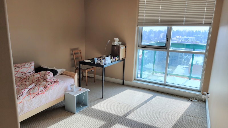 콘도: 2bed/2bath에 두분만 살고, 거실은 공유(TV없음), 고층 남향, 전망, 집내부에 세탁기, 복도에 garbage chute, 1층에 gym/tv룸.