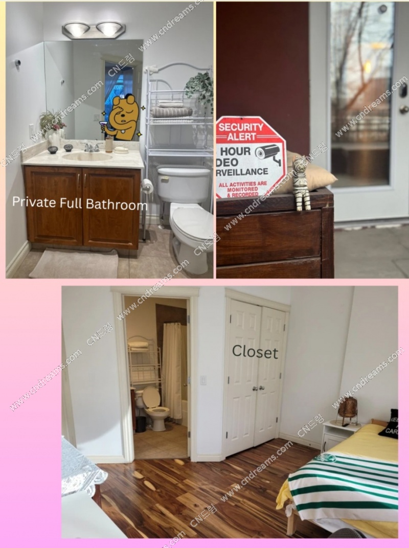 Full furnished, high ceiling, 개인 화장실(full bathroom), 2층 balcony 사용가능, 정남향에 공원 뷰, 큰 통창, 전자동 블라인드, 공기청정기, 에스프레소 머신, 에어 프라이어, 프린터기, 쌀, 세제, 휴지, 기본 조미료 등등