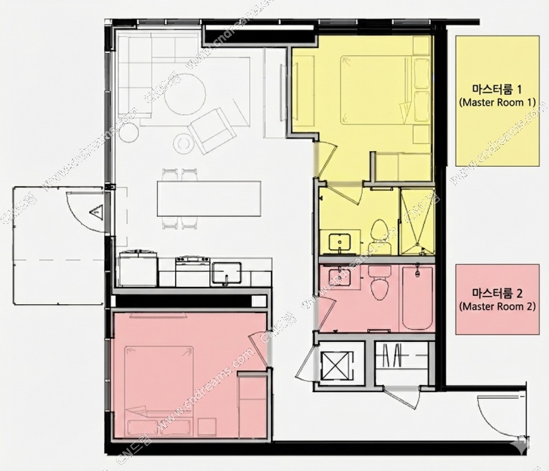 마스터룸 1 / 마스터룸 2 각각 개별 렌트