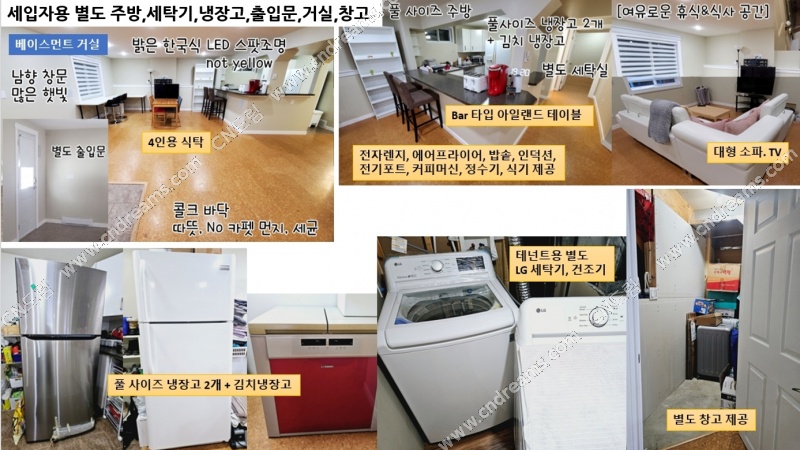 - 넓은 워크아웃 베이스먼트(1100 sqft) 전체를 세입자 공용으로 사용하여,