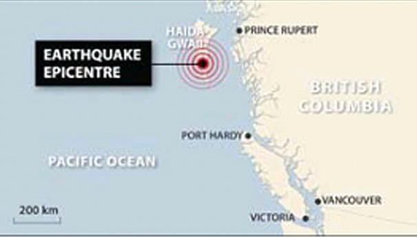 지난달 27일 오후 8시4분경 BC주 프린스 루퍼트항 서남쪽 198km지점에서 리히터 규모 7.7의 지진이 발생했다. 지진 발생 이후 여러 차례 여진이 발생했으며 일부 여진의 강도는 리히터 규모 5를 초과했다.이번 지진으로 인한 사상자나 재산 피해는 ..