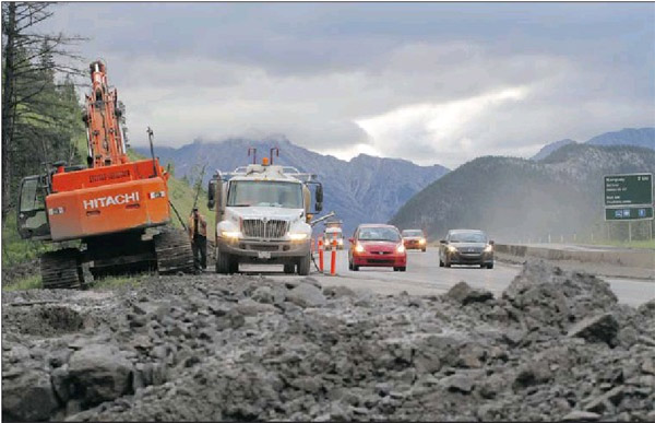 밴프 인근 1번 고속도로, 20일 산사태 발생