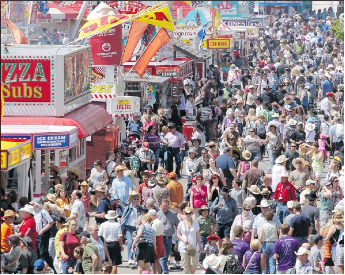 지난 토요일 시눅의 52번째 스탬피드 아침식사에 7만 명의 시민들이 몰려와 장사진을 이루었다. 주최측이 준비한 음식량도 가히 상상을 초월할 정도였다. 이날 아침을 위해 준비된 양은 커피만 6만 리터, 3,000파운드의 팬케익과 스포럼보 소시지, 75..