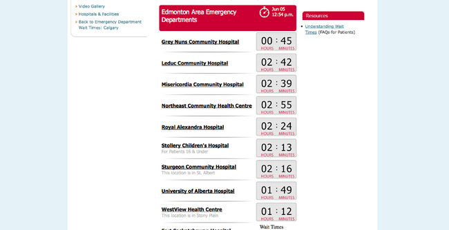앨버타 보건부 ‘응급실 대기시간’ 온라인 확인 서비스 개시