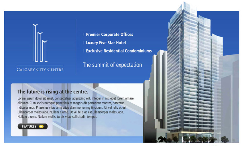 캘거리 다운타운Eau Claire 인근에 36층 규모의 빌딩이 다음달 착공에 들어간다. 캘거리 City Centre로 명명된 이 빌딩은 85만 스퀘어피트 면적의 주상복합빌딩으로 건설된다. 이 빌딩에는 사무실, 텔, 소매점 및 콘도미니엄 등이 들어서게 된다. Cit..
