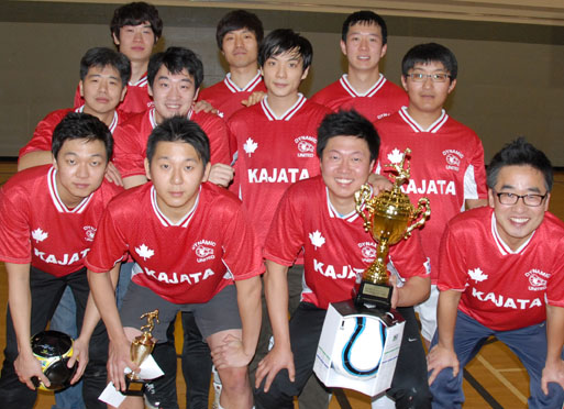 지난 3월 18일(일) 오후 4시 SW소재 Calgary Christian School에서 열린 캘거리 한인실내축구대회서 다이나믹 OB(old boy, 사진)팀이 동생 팀인 다이나믹 YB(young boy)팀을 누르고 제2회 크렌드부동산 후원 캘거리 한인실내축구대회 우승을 들어..