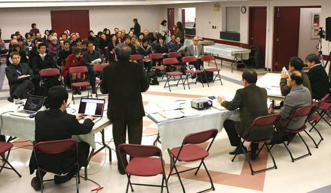 한인 커뮤니티 센터 회칙개정을 위한 임시총회가 연기 되었다. 3월5일 월요일 오후 7시 열린 임시총회는 눈이 내리는 궂은 날씨에도 많은 회원, 한인들이 참석했다.이날 임시총회 질의 응답 시간에는 다양한 의견이 표출되었는데 그 중에는 활동회원(active ..