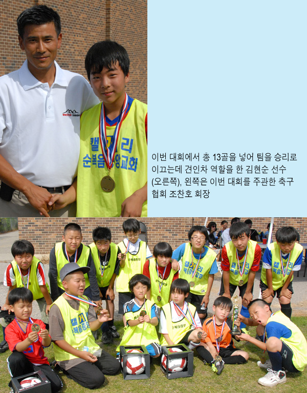 - 순복음중앙교회 우승컵 차지 -지난 8월 27일(토) 제 2회 캘거리 한인 유소년 축구 대회가 캘거리 한인들의 기대와 관심 속에 개최되었다. 본 대회는 애초 지난 6월 개최 예정이었으나 우천관계로 연기되었던 것인데, 다행히 이날은 화창한 날씨 속..