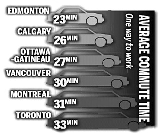 캘거리의 통근 시간이 캐나다에서 두 번째로 적게 걸리는 것으로 나타났다. 지난 주 발표된 통계청 자료에 따르면 캐나다 6대 도시들 중에서 에드몬톤 다음으로 통근시간이 적게 걸리는 것으로 나타났다. 캘거리는 26분으로 인구 1백만 이상 도시 평균인 3..