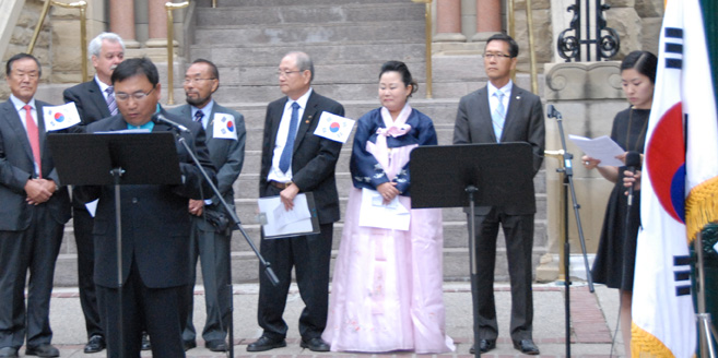 - 200명 넘는 교민들 감격적인 행사 지켜봐 -지난 8월 15일(월) 낮 12시 캘거리 시청 앞에서는 광복절 기념일을 맞아 태극기 게양식 행사가 열렸다. 한인회와 여성회 주관으로 열린 이날 행사는 약 200명이 넘는 교민들과 시민들이 참가하여 캘..