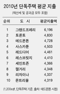 광역 에드몬톤 ‘세금 및 공과금’ 전국에서 세번째로 비싸