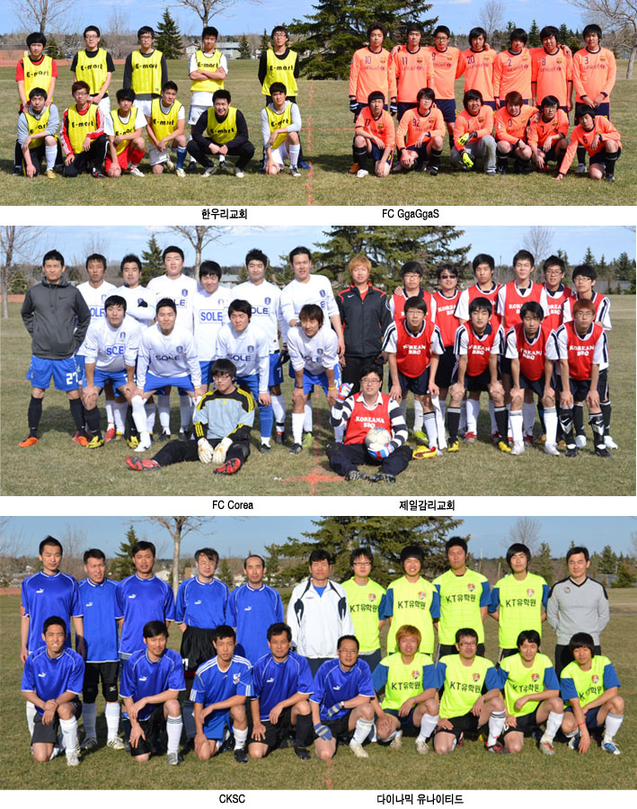 캘거리축구협회(회장 조찬호)가 주관하는 제 1회 한인축구리그가 지난 5월 1일 6개팀이 참가한 가운데 성황리에 개막되었다. 화창한 날씨속에 첫게임에 참가한 팀들은 설레임속에 약간은 긴장한듯 초반에는 경기를 풀기 힘들어 하는 모습들이 종종 보였으나 경..