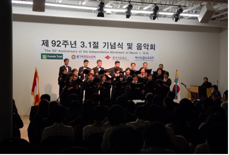 지난 2월 26일(토) 캘거리 한인회관에서는 약250 여 명의 동포들이 참석한 가운데 92주년 삼일절 기념식과 음악회 행사가 열렸다. 새로 완공된 한인회관서 처음 열리게 된 이번 음악회에서는 6개의 교회팀과 노인합창단, 한인합창단 그리고 개인연주자 ..