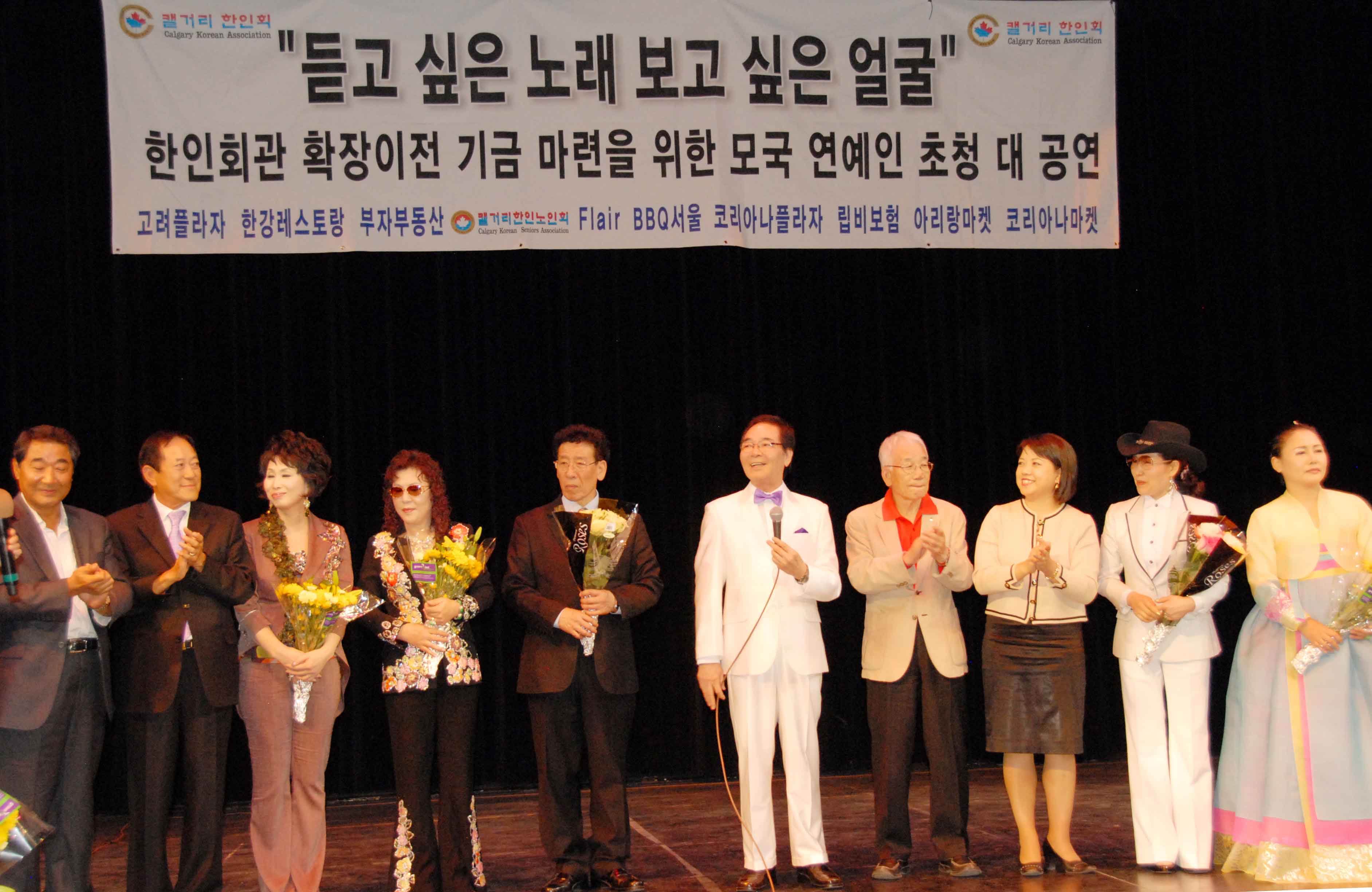 지난 9월 27일(일) 캘거리 대학내 대극장에서는 캘거리 한인회 주최로 한인회관 확정이전 기금 마련을 위한 이 열렸으며 약 250명의 한인동포가 참석하여 고국에 대한 향수를 느낄수 있는 시간이 되었다. 한국 “우리 것 보존 협의회” 소속 연예인들로 ..