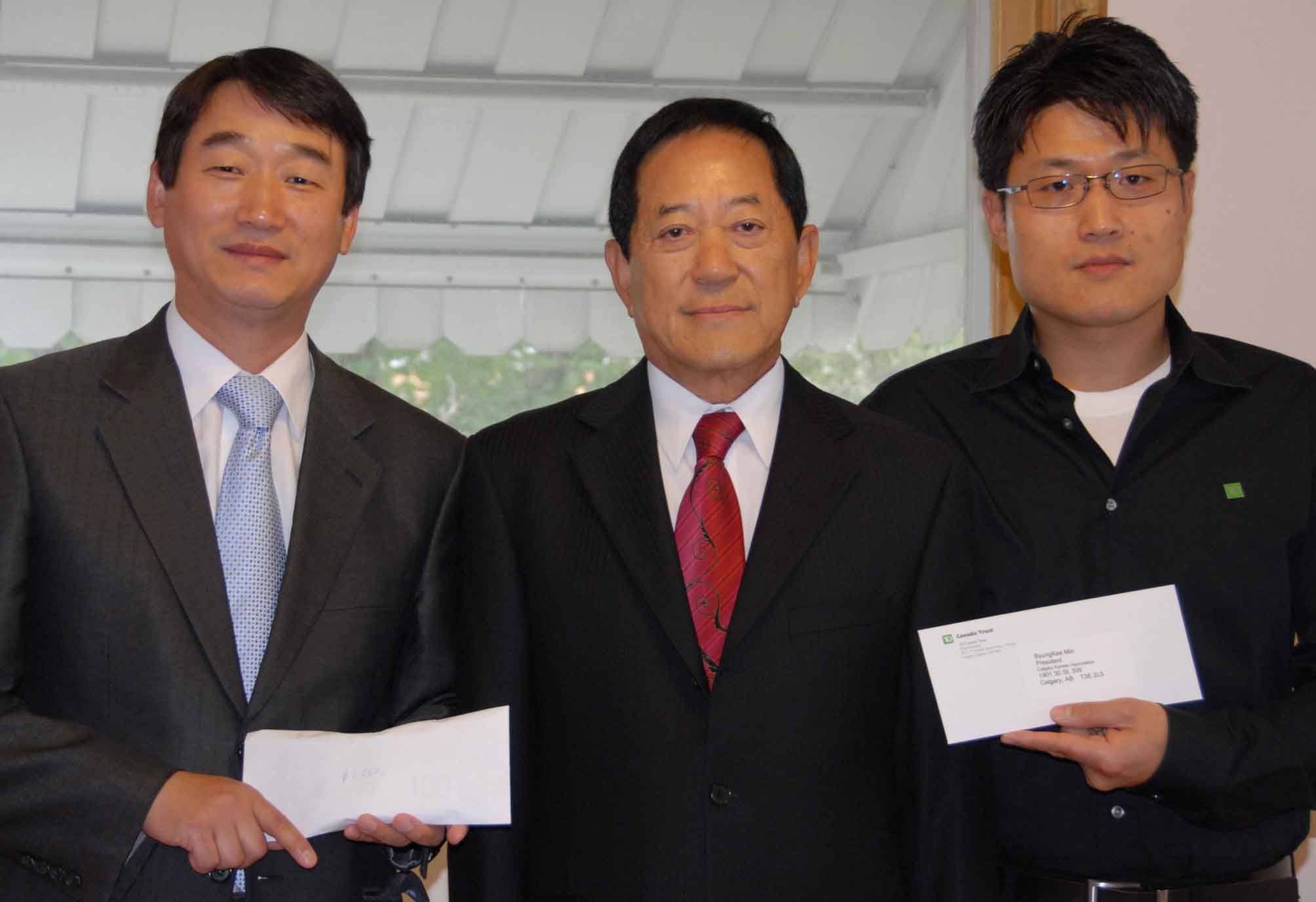 사진 설명) 오른쪽부터, TD은행내 캘거리 NW Northmout Dr.지점의 고상범 지점장, 민병기 캘거리 한인회장, 교역자협의회 회장 김형석 목사 지난 28일(화) 낮 12시, 캘거리 한인회관에서는 2개 단체의 후원금 전달식이 열렸다. 우선 TD은행에서..