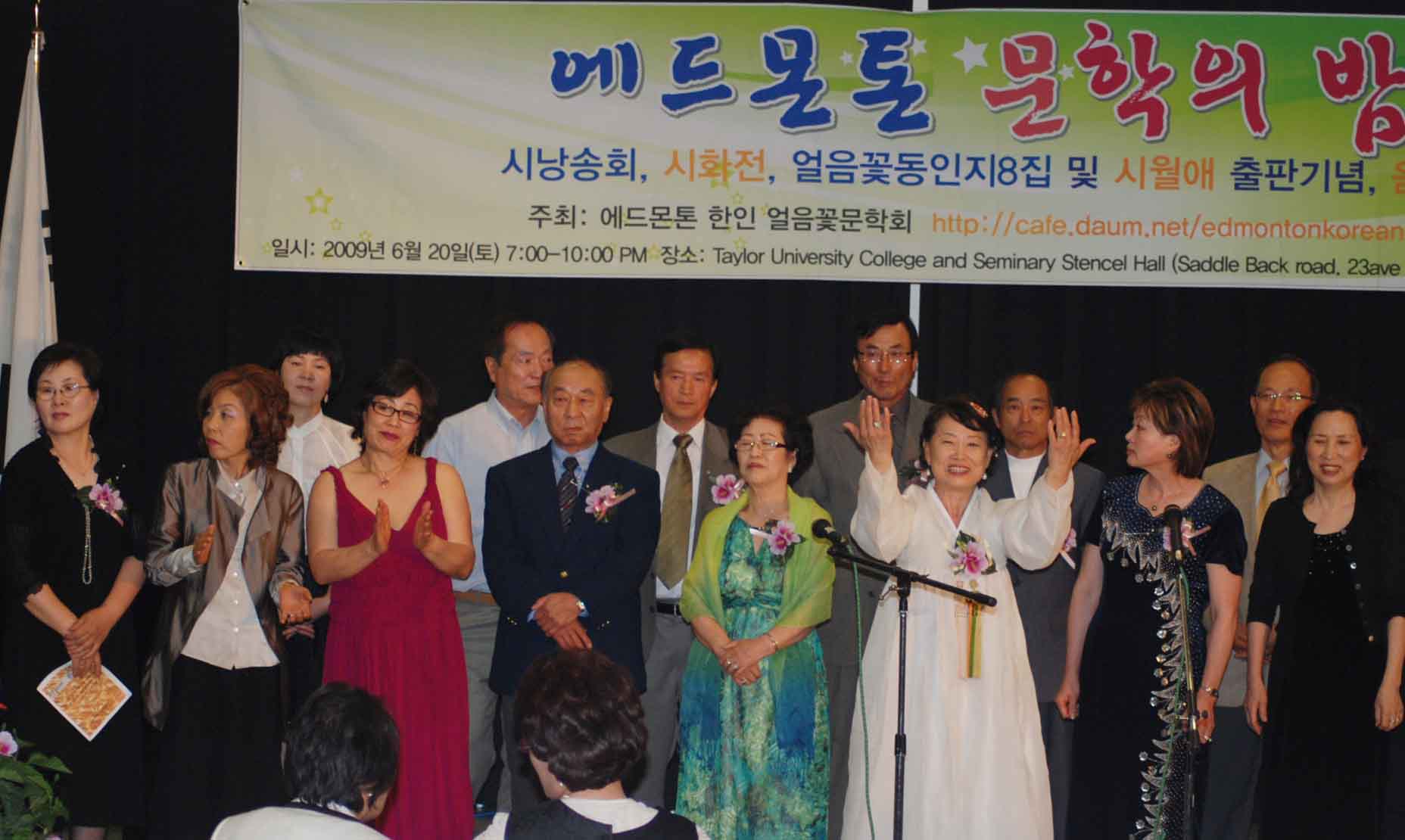에드몬톤 문학 동아리인 얼음꽃 문학회가 1회 문학의 밤을 열었다. 동아리가 형성된 지 10년 만에 열린 문학의 밤은 6월20일 토요일 테일러 대학 Stencel Hall에서 열렸다. 행사를 주관한 얼음꽃 문학회 김숙경 회장을 비롯한 회원들, 캘거리 문협 회..