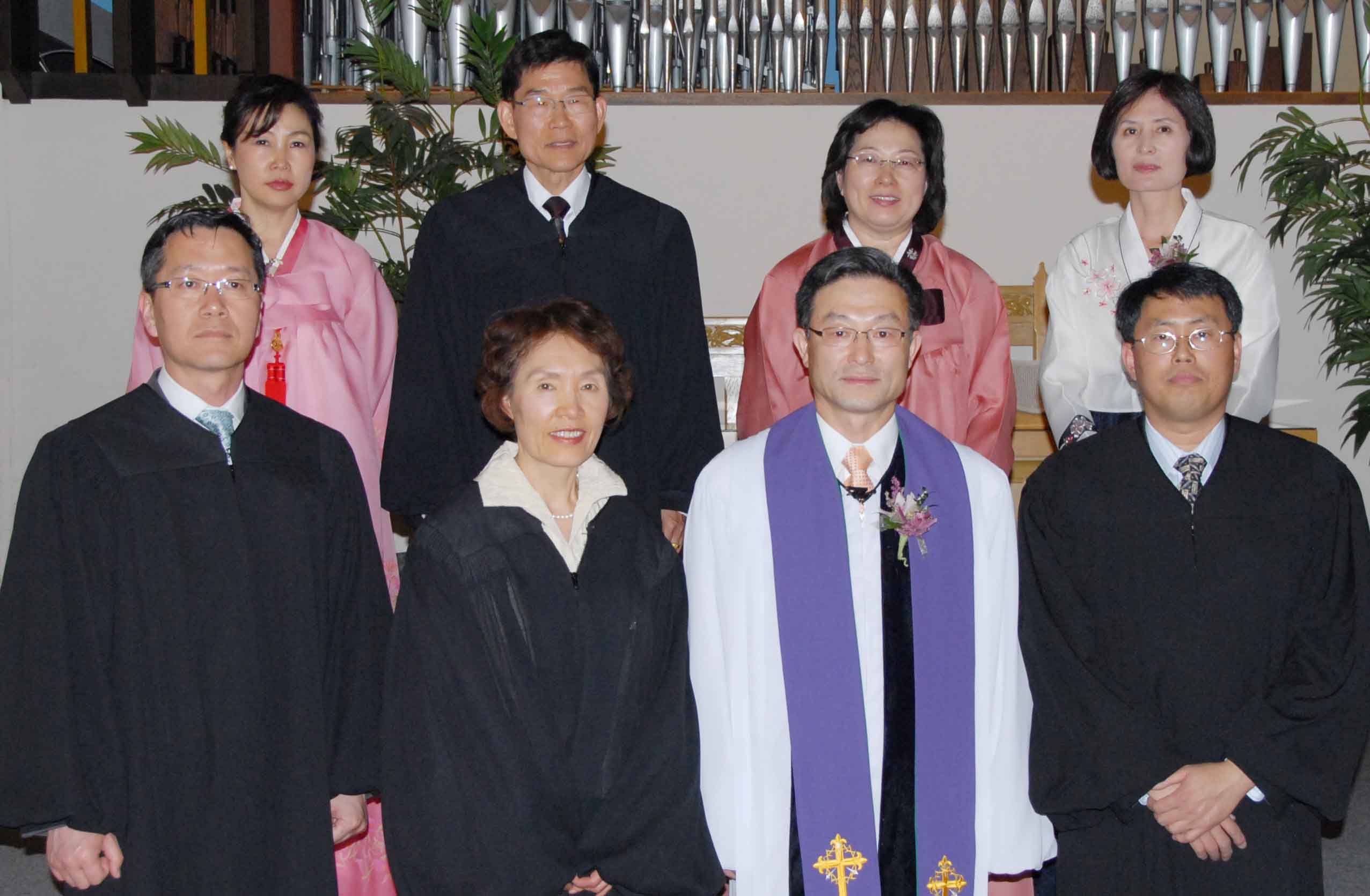 사진 설명 : 왼쪽부터 이병근 장로와 부인 김문해 여사(윗줄), 전광숙 장로와 남편 윤승용 장로, 최창선 담임목사와 이태자 사모, 윤민주 장로와 부인 이경자 여사지난 4월 19일(일) 오후 4시 캘거리 한인장로교회(담임목사 최창선)에서는 3명(전광숙..