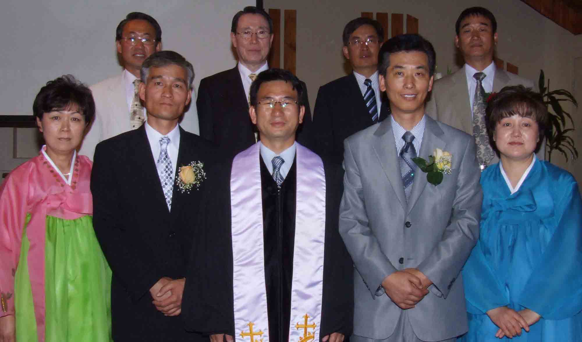 사진설명) 윗줄 왼쪽부터 순복음중앙교회 김원효 목사(교역자회 회장), 밴프 제일교회 지교회 천성덕 목사, 영락교회 송영배 목사(교역자회 총무), 침례교회 김형석 목사아랫줄 왼쪽부터 정 집사 부인 최경옥여사, 정준구 안수집사, 제일교회 강진우 목사(당..