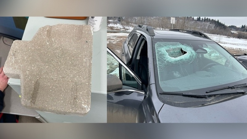 달리는 차량에 콘크리트 벽돌 던져 - 에드먼튼 Whitemud Dr.에서 ..