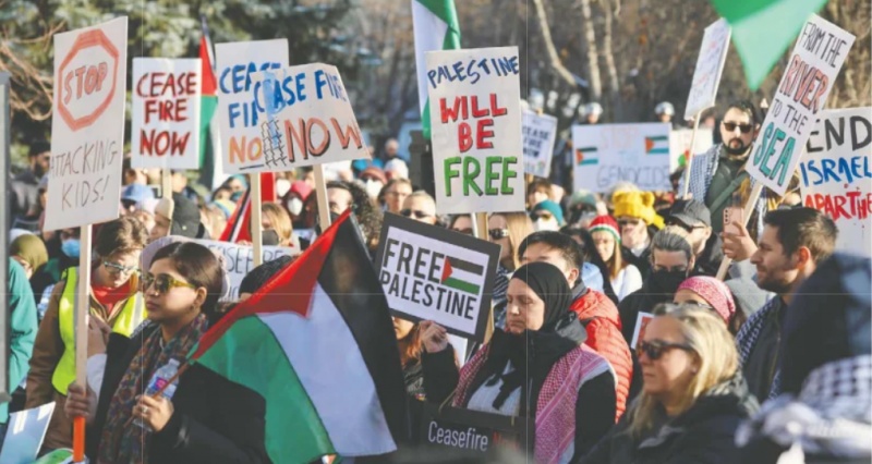 캘거리, 대규모 친 팔레스타인 집회 열려 - 주최측 추산 1천 여 ..