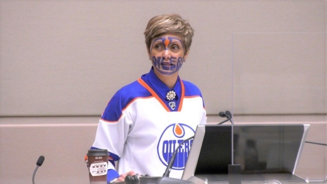 캘거리 하키팀 플레임즈와 에드먼튼 오일러스의 플레이오프를 앞두고 각 도시의 시의회 사이에서 벌어졌던 내기 결과로, 지난 7일 캘거리 시장과 시의원들은 오일러스의 팀 저지를 입고 에드먼튼 시의회와 온라인으로 진행된 회의에 참석했다. 31년 만에 벌어졌..