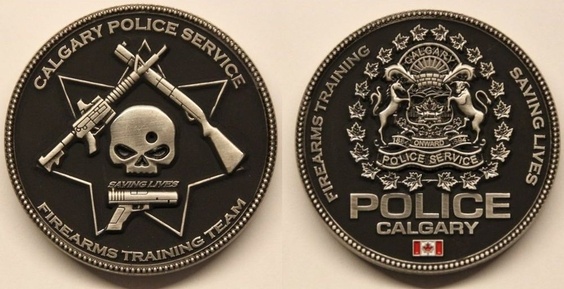 캘거리 경찰청은 10년 이상 사용해온 매우 공격적인 디자인을 가진 코인의 사용을 중단했다. 해골의 이마에 총알구멍이 나있고 3정의 총기에 둘러싸인 그림에 ‘생명을 구한다’라는 내용이 적힌 디자인에 ‘캘거리 경찰청 총기 트레이닝 팀’이라는 글귀가 새겨..