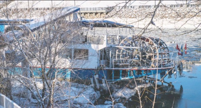 에드먼튼 리버보트, 수위 갑자기 높아져 얼음 위로 올라가