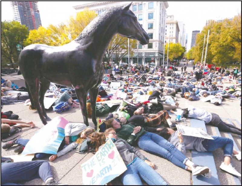캘거리 시청 광장서 기후변화 항의 시위