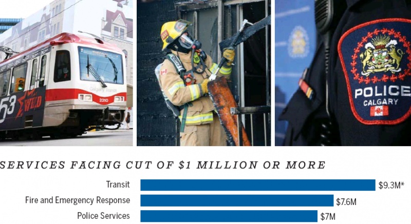 캘거리 시가 남은 5개월여 동안 비즈니스 재산세 10% 인하에 사용될 일반 예산6천만 달러를 만회하기 위해 대대적인 서비스 삭감에 돌입한다. 주요 대상은 시 공공서비스 중 가장 큰 부분을 차지하고 있는 트랜짓, 경찰, 소방 예산이 될 예정이다. 캘거..