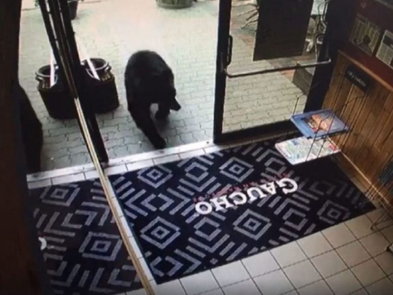 지난 달 23일 저녁 캔모어 소재브라질 레스토랑에 작은 흑곰 한 마리가 들어온 모습이 감시 카메라에 잡혔다. 저녁 한창 바쁜 시간에 불청객이 들어오자 손님들은 테이블 위로 뛰어 올라 몸을 피했다. 당당한 걸음으로 식당에 들어 온 곰은 약 5초동안 두..