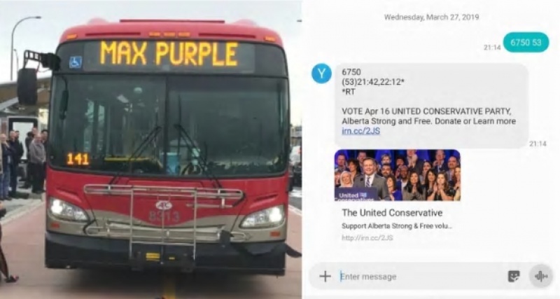 캘거리 버스 문자정보에 UCP 선거 홍보 논란