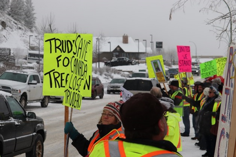 트뤼도 총리가 수요일 B.C. 캠롭스(Kamloop) 호텔에서 원주민들을 상대로 액화천연가스 파이프라인의 이점을 홍보 할 때 호텔 밖에서는 시위대가 "탄소세 현금 강탈" "트뤼도 반역자" 팻말을 들고 시위를 했다. 그러나 다른 한편에서는 프랑카드와 피켓을..