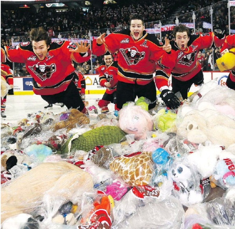 지난 일요일 오후 새들돔에서 열린 서부 하키 리그 게임에서는 올해로 24년째를 맞는 테디 베어 토스 행사가 있었다. 이 날 경기에서 히트맨 포워드 케이든 엘더의 첫 골이 골문을 뚫자 팬들은 환호를 하며 미리 준비해온 곰인형을 아이스 링크로 던졌다. ..