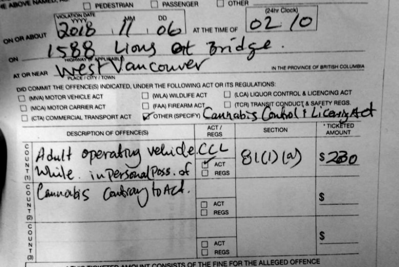 캘거리 남성, BC에서 마리화나 소지 운전 벌금