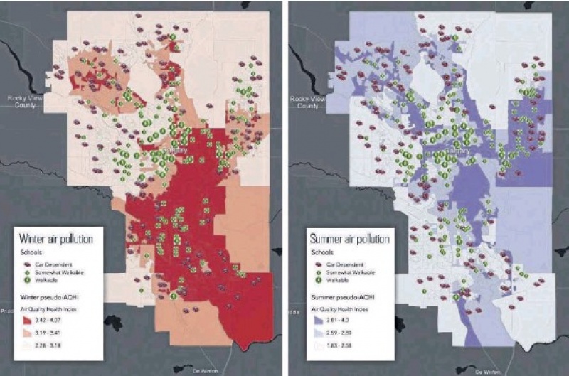환경 품질 연구 결과에 따르면, 캘거리 시의 남부가 겨우내 대기오염에 대한 부담을 가지고 있는 것으로 나타났다. 하지만 이 상황은 여름에는 확연히 달라져 캘거리의 북동부가 대기오염에 가장 나쁜 영향을 받는 것으로 캘거리 대학의 조사결과에서 드러났으며..