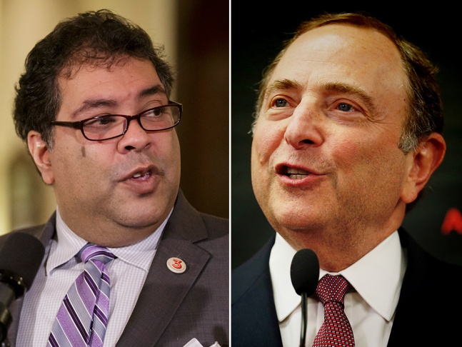 캘거리 플레임즈 측에서 더 이상 캘거리에 새로운 하키 경기장 건설 계획을 추진하지 않겠다고 밝힌 이후, 경기장 문제를 놓고 캘거리 나히드 넨시 시장과 NHL 커미셔너 개리 뱃맨 사이의 진술이 엇갈리고 있다. 최근 뱃맨은 지난 3월 이뤄졌던 넨시와의 ..