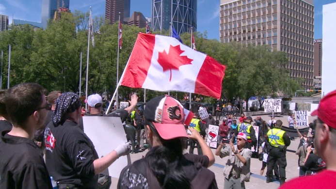 캘거리 반 이슬람 단체 시위에 반대 시위 등장