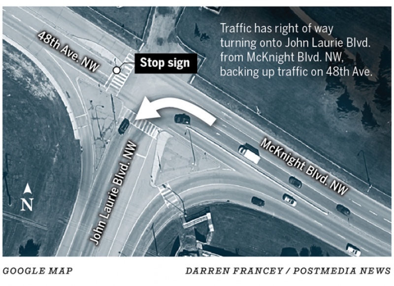캘거리 NW에 위치한 North Haven 지역 주민들이 지역을 빠져나오는 유일한 교차로의 위험을 토로하며 시에 이를 개선해줄 것을 요청하고 나섰다. 이 지역 주민들은 John Laurie Blvd. 의 북쪽 끝과 48 Ave.가 McKnight Blvd. 로 변화하는 T자 ..